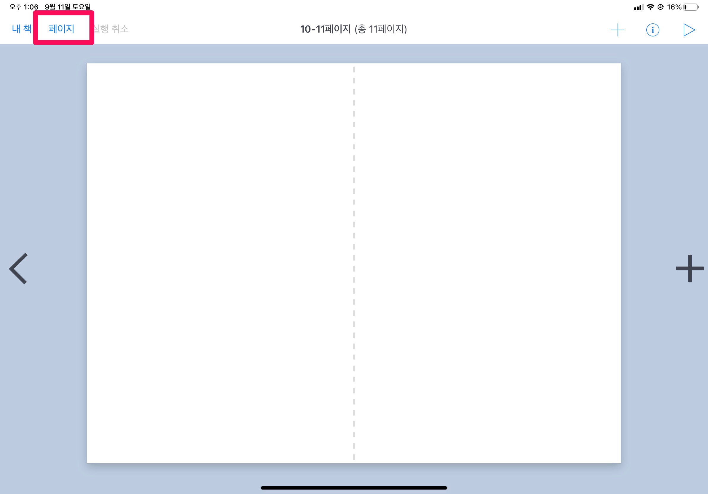 페이지를 더 추가하고 싶은 때는 화면 오른쪽의 ‘+’ 표시를 눌러서 추가할 수 있다.